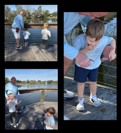 We took the grandsons to Secret Lake Park. Cohen caught his first fish, a bluegill, but didn't want to touch it. He was interested in eating the bait (not worms, but bread 🤣🤣). Bennett caught his second fish, another bluegill. He was happy! Several birds flew in to grab some leftover bread. After fishing, the boys enjoyed playing on the playground equipment, then ate lunch at Dairy Queen.